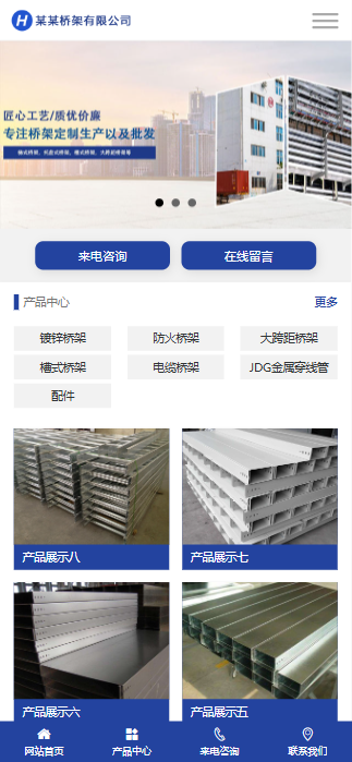PbootCMS内核开发的网站模板,该模板适用于电缆桥架定制生产类网站,钢结构企业网站源码等企业,其他行业当然也可以做,只需要把图片文字换成其他行业的就可以啦,如果有HTML基础的话再稍微修改一下样式颜色更完美哟~